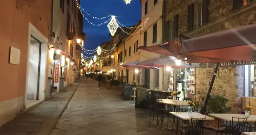 U ovaj gradić došli smo prilično kasno, oko 17 sati, pa nije bilo šanse da razgledamo stijenu Rocca koju su podigli Sijenci 1361. godine, sa koje se pruža prelijep panoramski pogled i u kojoj se u prizemlju nalazi prodavnica vina. Vino je izuzetno intenzivno, okus kompleksan, a mami i njegov specifičan miris. Pari se pretežito uz divljač. U gradskoj kafani možete primijetiti šolje za čaj kakve su se nekad koristile u Jugoslaviji, sa plavim prstenom oko sebe.