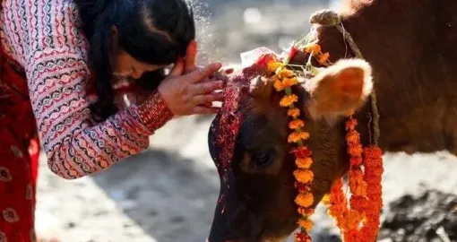 Treći dan Tihara posvećen je kravi, koja se u hinduizmu smatra svetom. Ovdje se krave obožavaju kao simboli majčinstva i porodičnog prosperiteta. Svetkovina se završava jutarnjim pospremanjima i uređivanjima kuća, vrtova i domova. Bezbrojni vijenci sa mirišljavim orhidejama i drugim egzotičnim cvijećem učinit će da Kathmandu tog dana dobije bajkovit izgled, a svi prilazi kućama i javnim institucijama, ukrašeni cvjetnim laticama, rižom i svijećama, olakšaće svemoćnoj božici Lakshmi pristup ulaznim vratima domova koje će tog dana blagosoviti. Tog dana Nepalci će za doručak, ručak i večeru uživati u tradicionalnom jelu “dal bat”, spravljenom od leće i riže, s kojim se obavezno iznosi i curry sa mesom.