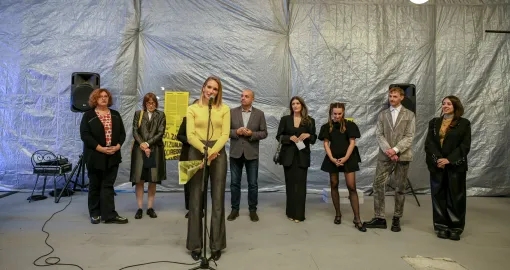 Prvo pitanje za Martinu glasi: Po čemu ćemo pamtiti rečenu Koreografiju za završnu liniju? “Ono što je izuzetno bitno naglasiti za ovogodišnji jubilarni Zagrebački salon je činjenica da je naš centralni prostor za izlaganje, zdanje Meštrovićevog paviljona, u cjelovitoj obnovi nakon potresa. Tako da je čitava organizacija bila izuzetno veliki izazov, gdje se nije željelo odustajati od kontinuiteta, čak bez imanja osnovnih uvjeta za organizaciju takve jedne goleme manifestacije, od prostornih do onih financijskih. Ne samo da je Salon bio izazov, nego zaista on još uvijek to jeste. Programi se dešavaju na nekoliko lokacija u Gradu Zagrebu, trudimo se raditi mala čuda. Sama činjenica da je Salon izmješten na brojna druga mjesta partnera, čini Salon ove godine drugačijim i izuzetnim”, kaže Martina.