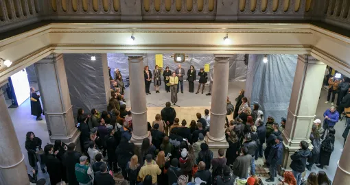 Salon je svečano otvoren 7. ovog mjeseca u Oktogonu u centru Zagreba, nakon čega se otvorenje nastavlja u prostoru galerije Srpskog kulturnog društva (SDK) Prosvjeta, također u samom središtu grada, potom i na mnogobrojnim lokacijama diljem Zagreba. Performansi i site-specific intervencije (djela koja se rade za određeni prostor i u njemu; op.a) u sklopu službenog postava 60. zagrebačkog salona, osim u Oktogonu i SKD Prosvjeta, još se događaju na više od 20 mjesta, od pročelja Meštrovićevog paviljona i prostora placa Dolac, do Tunela Grič, Gradskog dramskog kazališta Gavella, Učiteljskog faksa, Bloka Badel, Kapele sv. Jurja... “Imamo stvarno puno lokacija”, konstatira Martina. Tako da... i jako popularni Meštrovićev paviljon je u gostovanju.