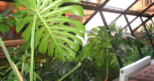 Monstera deliciosa je također omiljena soliterna sobna biljka iako se dobro druži i sa ostalim biljkama u staklenim baštama. Zahtijeva zimsku temperaturu od 18 do 20 ℃. S obzirom na to da na savitljivom stablu ima velike šupljikave listove, treba joj osigurati odgovarajući oslonac da bi došla do potpunog izražaja njena dekorativnost. Ne odgovara joj sunce, pa je bolje postaviti je u polusjenu.