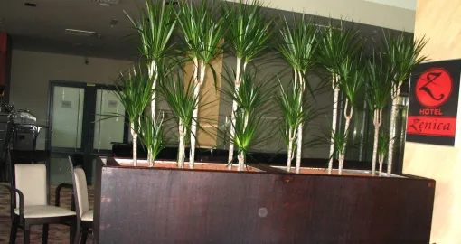 Kada biramo mjesto za sjedenje u javnom prostoru, recimo u kafani ili restoranu volimo da to bude prostor koji nam omogućuje intimu, zvučnu i vizuelnu izolaciju, a opet da smo zajednica sa ostalim ljudima. Takvu prozračnu i dekorativnu izolaciju možemo postići sa sobnim biljkama, prije svega lisno dekorativnim, “moćnijim” soliternim primjercima. Bolji efekat se postiže ponavljanjem istih biljaka.