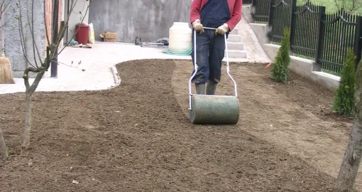 Ako toga nema, na licu mjesta treba nabaviti plodnu zemlju, koja je sve skuplja, pa je važno prilikom zemljanih radova uvijek sačuvati gornji, tamniji sloj plodne zemlje, jer dobro dođe za zasnivanje travnjaka, povrtnjaka i cvjetnih gredica. Travnjak se može zasnovati sjetvom ili travnim busom. Jeftinije je sjetvom. Za sjetvu se koriste parkovske smjese, koje se mogu nabaviti u vrtnim centrima. Sije se 25 do 50 g/m2. Ne treba vjerovati natpisu da je smjesa za sjenu, jer u sjeni nikada ne može biti dobar travnjak. Tlo treba dobro pripremiti, usitniti, poravnati i posijati travu, te iza sjetve povaljati ili lopatama pritisnuti da zemlja nalegne na sjeme. Ukoliko nastupi suša, novozasnovani travnjak treba redovito i pažljivo zalijevati kišenjem, jer su mlade biljčice osjetljive na sušu.