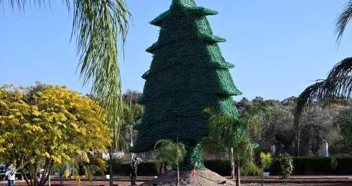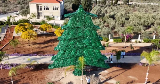 Libanska ekološka aktivistica Caroline Chabtini, zajedno s timom volontera, izgradila je model čuvenog libanskog kedra visok 10 metara koristeći 450.000 zelenih plastičnih boca.