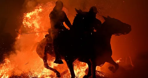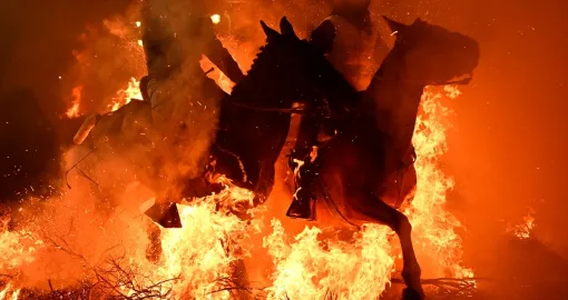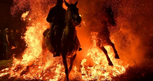 Na festivalu "Las Luminarias", jahači i konji u San Bartolomeu de Pinaresu, malom mjestu u centralnoj Španiji, skakali su kroz vatru, kako bi se, prema vjerovanju, očistili od grijeha.