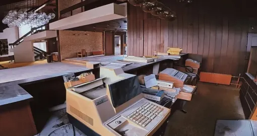 Kako snimak prikazuje unutrašnjost objekta, vidi se da je u lošem stanju i da sve više propada. Unutra i dalje postoje stvari koje kao da čekaju da ih neko ponovo koristi, knjige, čaše, kasete za projektor.