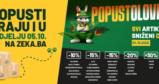 Za sve kupce koji kupovinu žele obaviti putem web shopa www.zeka.ba popust do 30 posto važi i u nedjelju, 5. oktobra, čime je pogodnost produžena i nakon velikog finala u poslovnicama.