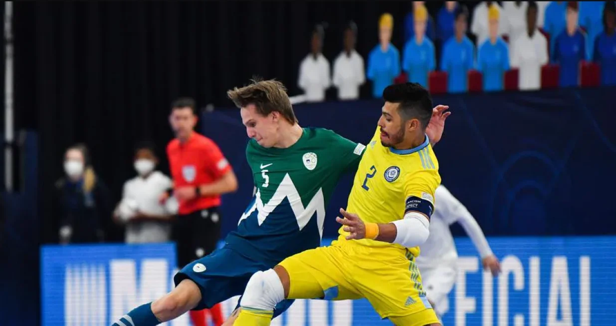 Na sedam minuta do kraja i dva gola prednosti Slovenija je bila u jako dobroj situaciji, ali Kazahstanci se nisu predali i pokazali su zašto su jedna od najboljih evropskih reprezentaicja. Igrala se 36. minuta kada Zhomart Tokayev ostaje zaboravljen pred golom i na asistenciju Taynana pogađa za 4:3, da bi Douglas Junior drugim golom donio izjednačenje, a time i postavio konačan rezultat, 4:4.