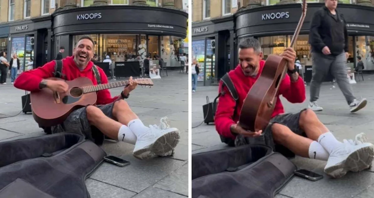 Jonas Gutierrez svira gitaru na ulici (FOTO: Screenshot/Kolaž)