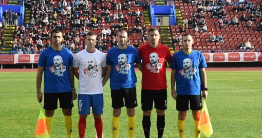 Fudbaleri oba tima istrčali su na teren u majicama sa njegovim likom, a neposredno pred početak susreta podignuta je velika parola na kojoj je pisalo: