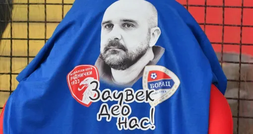 Na tribinama su bile istaknute zastave i transparenti sa njegovim likom, a podršku su došli pružiti i navijači Radničkog, Crveni đavoli, zajedno sa domaćim Lešinarima, koji su istakli emotivnu poruku:
