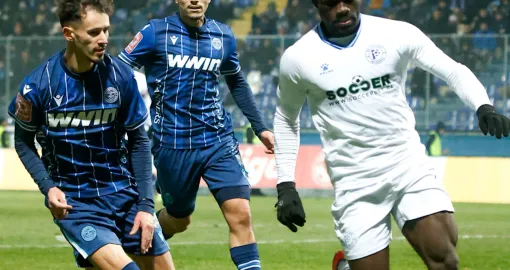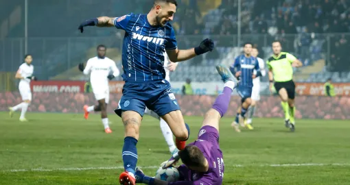 Plavi uzvraćaju deset minuta kasnije odličnom šansom. Joao Erick je oduzeo loptu, dodao do Davora Rakića, ovaj odložio povratnu za Aleksandra Boljevića, no njegov šut iz odlične pozicije odlično brani Elvir Trako.
