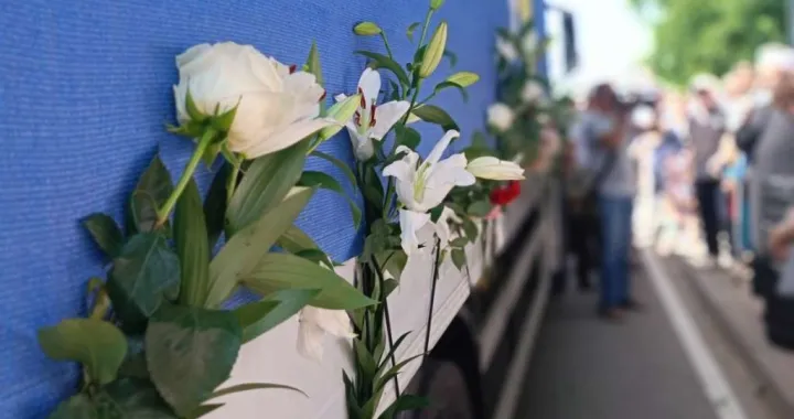 Prijedor, BiH - 20. juli 2024.: Porodice ispratile posmrtne ostatke četiri žrtve proteklog rata iz Prijedora koje su 1992. godine ubijene na području Korićanskih stijena, Čarakova i Kozarca/Anadolija