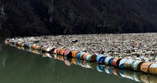 Rijeka Drina, simbol čiste i netaknute prirode opjevane u sevdalinkama, danas je kod Višegrada u BiH prekrivena velikim količinama otpada, što ekološki aktivisti opisuju kao ozbiljnu ekološku katastrofu.