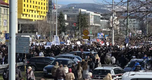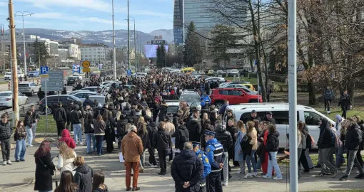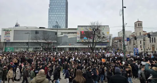 14:55 Protestu u Sarajevu se bliži kraj, okupljena omladina vraća se ka Zemaljskom muzeju.