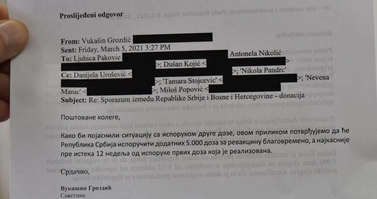 Pismo o isporuci drugih doza cjepiva/Radiosarajevo
