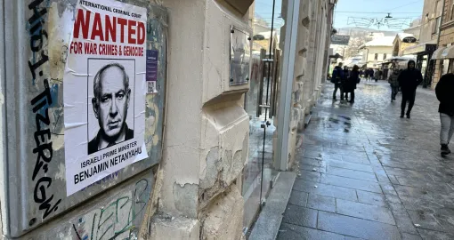 U centru Sarajeva jutros je na nekoliko lokacija osvanula "potjernica" za izraelskim premijerom Benjaminom Netanyahuom.