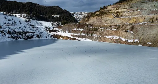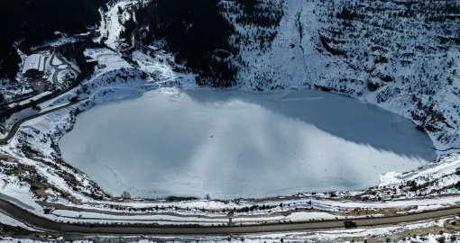 Jezero Nula, poznatije kao jezero Smreka koje se nalazi nedaleko od Vareša, na kopu bivšeg istoimenog rudnika željeza, ove zime je potpuno zaleđeno zbog dugotrajnih niskih temperatura, stvarajući atraktivan prizor za ljubitelje prirode.