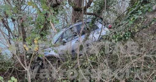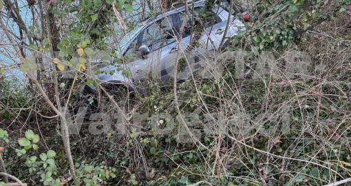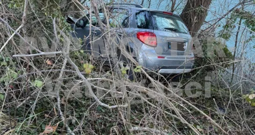Automobil se na koncu zaustavio među raslinjem i drvećem.
