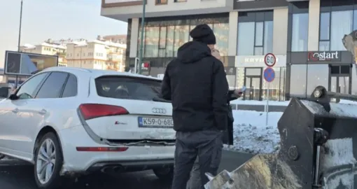 Kako javlja naša novinarka sa mjesta događaja, bager je, pod još nerazjašnjenim okolnostima, udario u zadnji dio automobila Audi.
