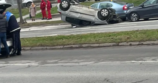 (FOTO) Strahovit četverostruki sudar u Tuzli: Jedno vozilo završilo na krovu, ima povrijeđenih