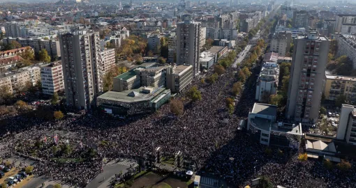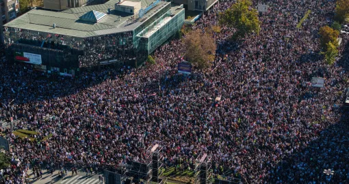 (FOTO i VIDEO) Desetine hiljada studenata i građana kod Željezničke stanice u Novom Sadu