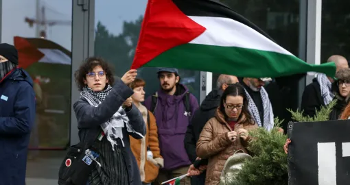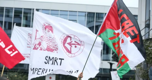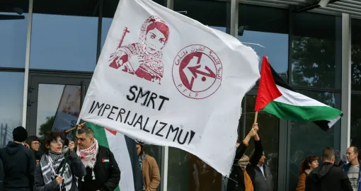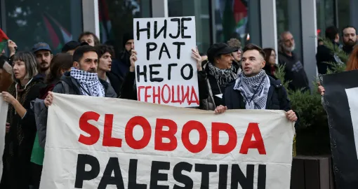 Oko dvije stotine demonstranata okupilo se ispred kule Skyline u Beogradu. Okupljeni su nosili zastave Palestine i uzvikivali propalestinske slogane.