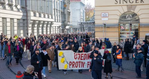 - Ujedinjeni smo protiv fašizma jer su napadi na Srbe u Hrvatskoj i napad na djecu iz Srbije napad na sve nas, jer nasilje prema manjinama i neistomišljenicima mora stati, jer govorimo glasno ne rasizmu prema migrantskim radnicima i izbjeglicama, jer je dio nas rođen nakon rata, a ipak osjećamo njegove posljedice, poručeno je na Trgu Kralja Tomislava na samom početku protesta.