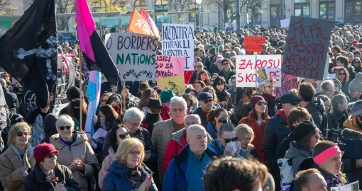 Organizatori su poručili kako se protive militarizaciji društva, napadima na žene i njihova reproduktivna prava, historijskom revizionizmu za kojega su ocijenili da ga štiti hrvatska vlast, javlja Anadolija.