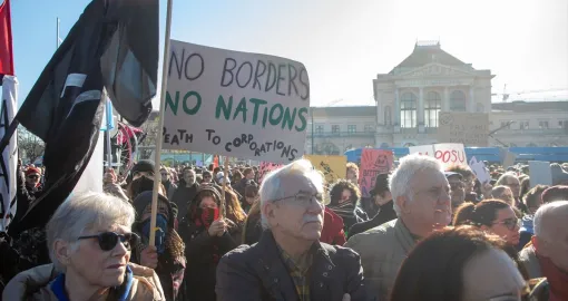 "Rođeni nakon rata a osjećamo posljedice“, „Balkanska federacija bez država i nacija“, „Viva Palestina“, „Stop fašizmu, kultu ličnosti komunizmu“, „No borders, no nations, death to corporations“ neki su od slogana koje su okupljeni istaknuli na zagrebačkom prosvjednom maršu.