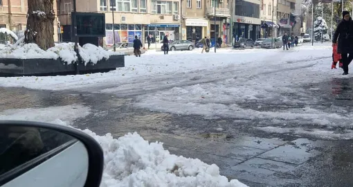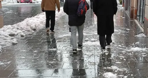 Snijeg i ledenice padaju sa zgrada na asfalt u Sarajevu.