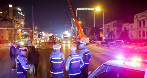 Tramvaj koji je danas pri velikoj brzini izletio iz šina i usmrtio jednog mladića (23), a nekoliko ljudi povrijedio, uklonjen je s ceste.
