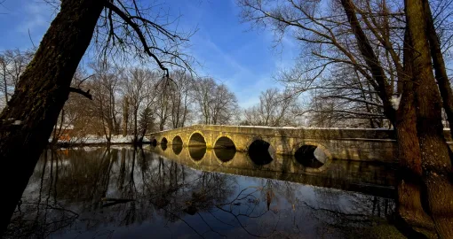 Smješten na rijeci Bosni, nedaleko od Ilidže, Rimski most u zimskim danima dobija gotovo bezvremenski izgled. Snijeg koji se zadržava na kamenim lukovima, obalama rijeke i okolnom rastinju dodatno naglašava njegovu jednostavnu, ali snažnu arhitektonsku formu, stvarajući prizore koji podsjećaju na neka minula vremena.
