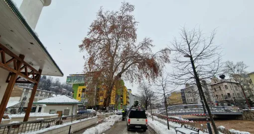 U neposrednoj blizini mosta i džamije, naime, nalazi se jedno drvo koje bi se moglo obrušiti uslijed starosti i dodatnog tereta koji je uzrokovao veliki snijeg koji je prekjučer padao u Sarajevu.