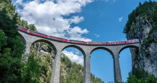 Na dijelu rute između Chura i St. Moritza nalazi se čuveni Landwasser Viadukt, jedan od najprepoznatljivijih željezničkih mostova u Švicarskoj. Dolazak do vjiadukta putnicima se unaprijed najavljuje kako bi bili spremni za fotografiranje.