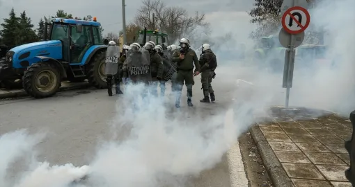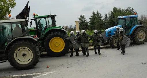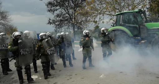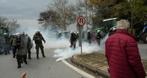 Poljoprivrednici i stočari u grčkoj regiji Makedoniji nastavili su protestima a danas je do sukoba s policijom došlo tokom okupljanja poljoprivrednika iz istočnog dijela Soluna, održanih na raskrsnici Prasina Fanaria.
