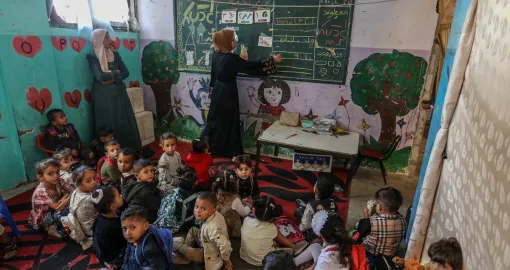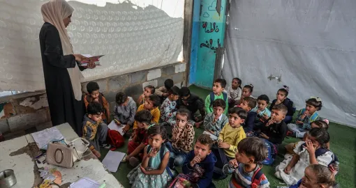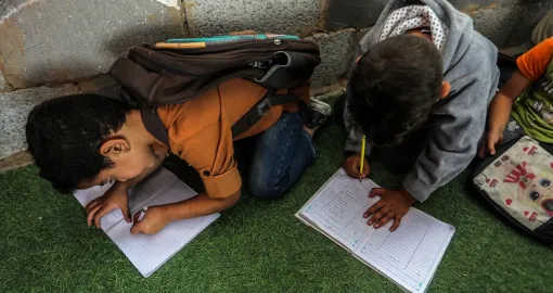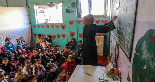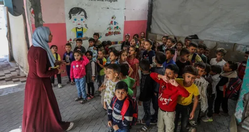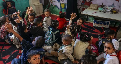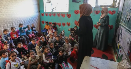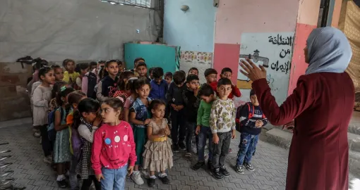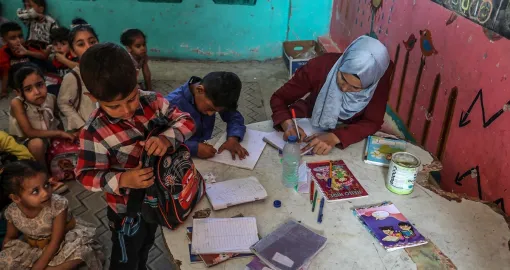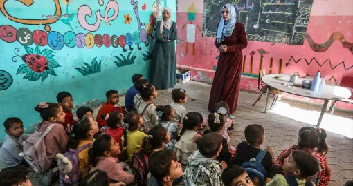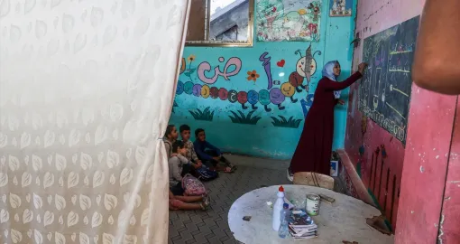 S obzirom na to da su brojne škole, univerziteti i vrtići u tom području sravnjeni su sa zemljom u izraelskim napadima, palestinski učitelji počeli su davati časove učenicima u svojim domovima kako bi nastavili s obrazovanjem.