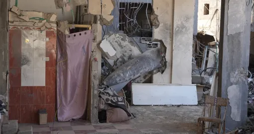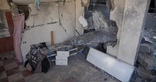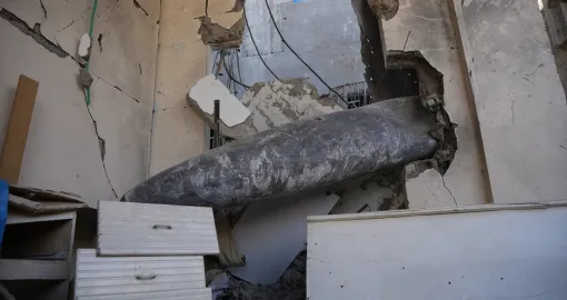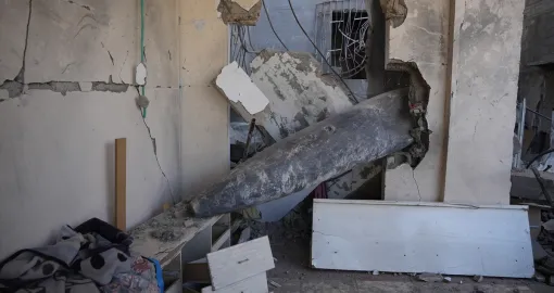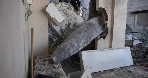 Palestinska porodica u gradu Gazi živi u stalnom strahu i neizvjesnosti, primorana da dijeli svoj dom s ogromnom, neeksplodiranom izraelskom bombom koja je zaglavljena u zidu njihove kuće, jer nemaju drugo mjesto za stanovanje.