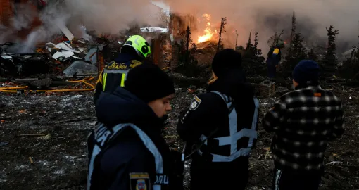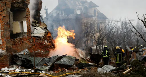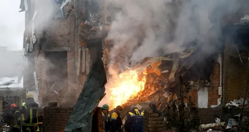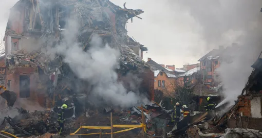 Najnoviji ruski napadi usmrtili su jednog muškarca i ranili još dvanaest osoba, uključujući četvero djece, saopćila je ukrajinska nacionalna policija. Projektil je uništio privatnu dvospratnicu u kijevskom predgrađu Sofiivska Borščahivka. Spasioci su u nedjelju pretraživali ruševine, dok su vatrogasci gasili požar.