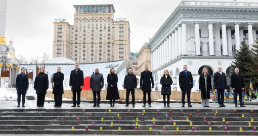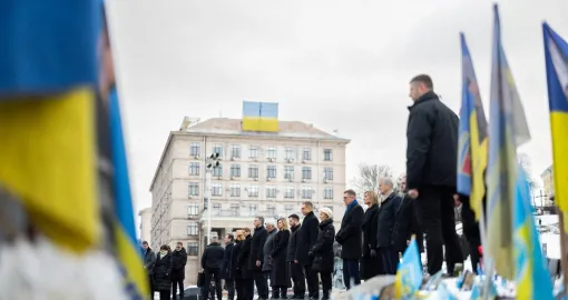 Kijev je domaćin brojnim zvaničnicima povodom godišnjice, uključujući predsjednika Evropskog vijeća Antonija Costu, predsjednicu Evropske komisije Ursulu von der Leyen, kao i premijere Hrvatske, Latvije, Estonije, Islanda, Danske, Švedske i Norveške.