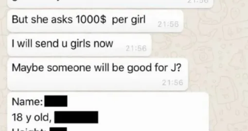 Na slikama se nalazi i snimak ekrana dijela tekstualne prepiske u kojoj jedna osoba govori o slanju djevojaka.