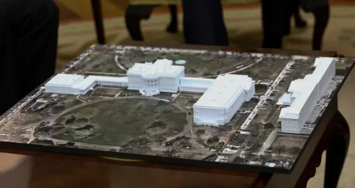 Bijela kuća nije mogla reći koja institucija, ako ijedna, ima ili je trebala imati nadzor nad rušenjem istočnog krila. Scharf je rekao da NCPC ima odgovornost za izgradnju, ali ne i za rušenje. Bryan Green, koji je bio komesar NCPC-a za vrijeme demokratskog predsjednika Joea Bidena, rekao je da bi radovi na rušenju i nova gradnja trebali biti povezani kao dio pregleda građevinskog projekta.