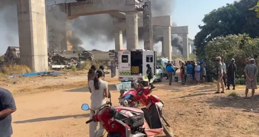 - Građevinska dizalica srušila se na voz u pokretu koji je polazio iz Bangkoka, rekao je.